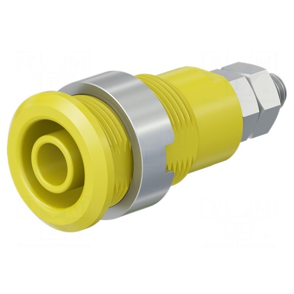 Złącze bananowe 4mm, 32A, montaż M4, kolor żółty
