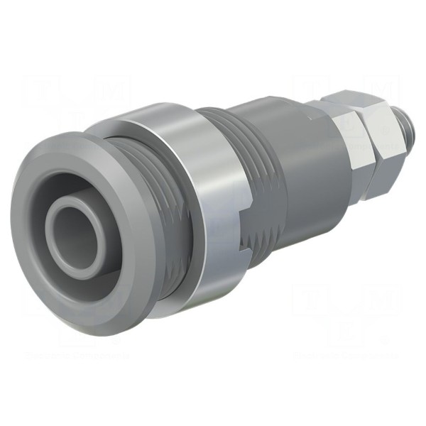 Gniazdo bananowe 4mm STÄUBLI 66.7043-28 to element montażowy przeznaczony do budowy układów pomiarowych oraz laboratoryjnych. Złącze charakteryzuje się prądem znamionowym wynoszącym 32A, zapewniając przepływ prądu w układach o napięciu do 1000V w kategorii CAT III oraz 600V w kategorii CAT IV.