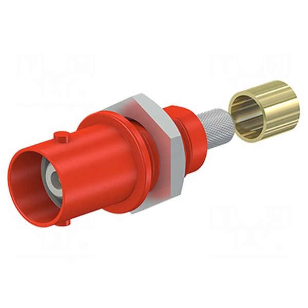 Złącze BNC, gniazdo izolowane, montaż panelowy, kolor czerwony