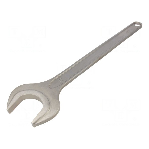 Klucz płaski jednostronny o rozmiarze 75mm wykonany ze stali narzędziowej. Konstrukcja narzędzia została zaprojektowana zgodnie z wymogami normy DIN 894.