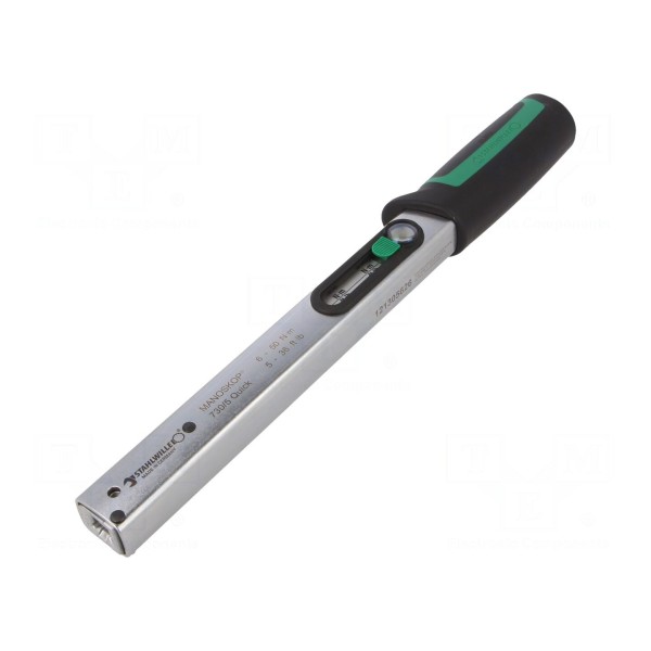 Klucz dynamometryczny typu MANOSKOP służy do kontrolowanego dokręcania połączeń śrubowych w zakresie momentu obrotowego od 6 do 50 Nm. Urządzenie charakteryzuje się całkowitą długością wynoszącą 315 mm.