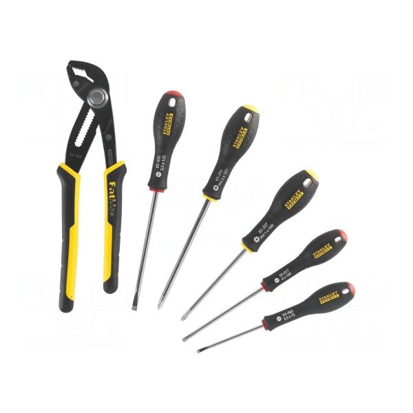 Zestaw narzędzi ogólnego stosowania STANLEY FMHT0-62639 składa się z 5 elementów przeznaczonych do prac warsztatowych i serwisowych. W zestawie znajdują się szczypce oraz wkrętaki niezbędne do wykonywania podstawowych czynności naprawczych.