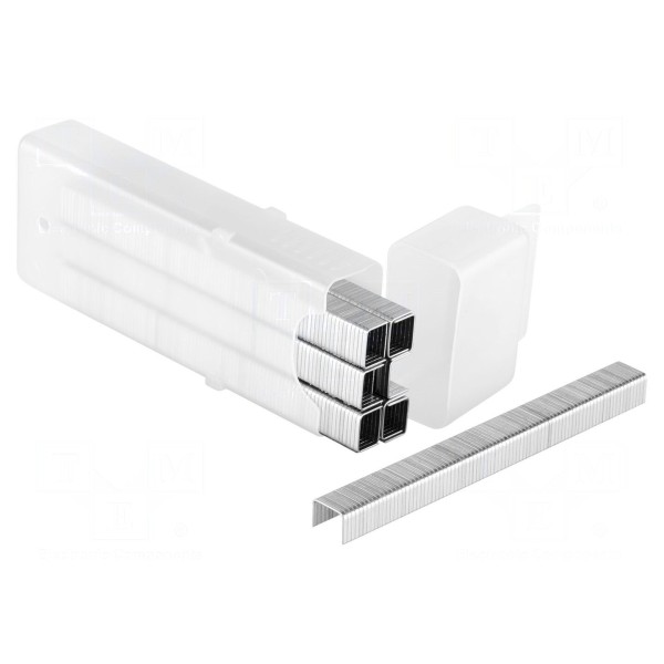 Zszywki o długości 8 mm przeznaczone do prac montażowych oraz mocowania materiałów. Produkt dostarczany jest w opakowaniu zawierającym 1000 sztuk.