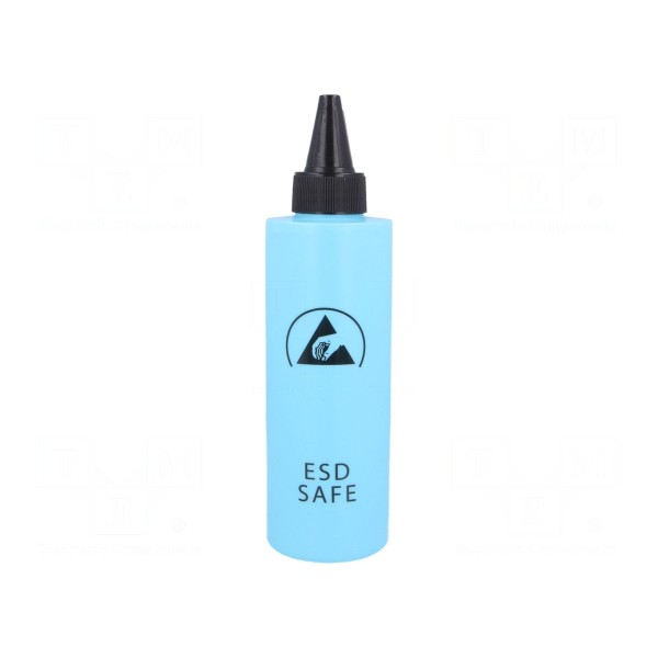 Butelka dozująca w wersji ESD przeznaczona jest do precyzyjnego podawania płynów technicznych w miejscach wymagających ochrony przed wyładowaniami elektrostatycznymi. Produkt posiada pojemność 0,25l i wyróżnia się niebieskim kolorem korpusu.