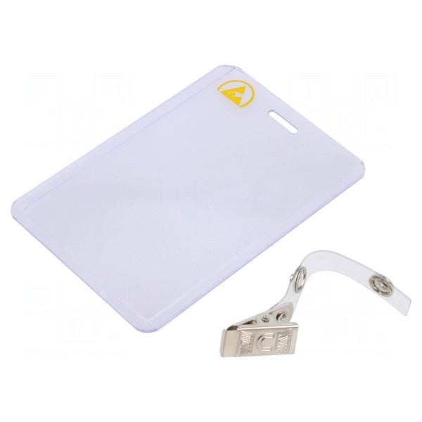 Akcesorium antystatyczne w wersji ESD przeznaczone do przechowywania identyfikatorów. Produkt posiada orientację pionową.