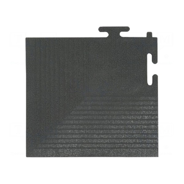 Mata podłogowa STATICTEC o wymiarach 0,11m na 0,11m i grubości 6,5mm pełni funkcję zabezpieczenia antypoślizgowego w środowiskach wymagających ochrony przed wyładowaniami elektrostatycznymi. Element został wykonany z PVC z dodatkiem cząsteczek metalu, co zapewnia deklarowaną rezystancję powierzchniową w zakresie od 100Ω do 1MΩ. Zastosowana konstrukcja spełnia wymagania norm ANSI ESD S541 oraz IEC 61340-5-1-ESD.