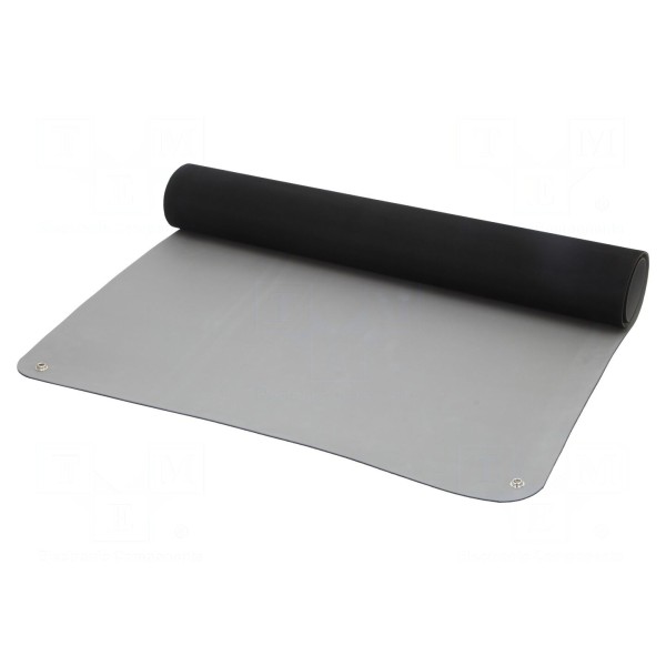 Mata stołowa ESD o wymiarach 1,2m długości oraz 0,6m szerokości przeznaczona jest do ochrony komponentów elektronicznych przed wyładowaniami elektrostatycznymi. Produkt charakteryzuje się grubością 2mm i posiada jasnoszary kolor. Konstrukcja maty opiera się na dwóch warstwach specjalnej gumy: rozpraszającej oraz przewodzącej.
