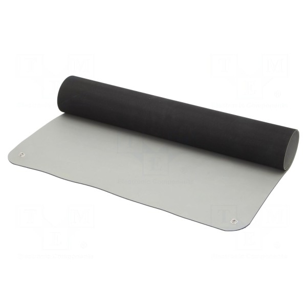 Mata antystatyczna o wymiarach 0,9m na 0,6m przeznaczona jest do ochrony stanowisk pracy przed wyładowaniami elektrostatycznymi. Produkt posiada konstrukcję złożoną z dwóch warstw specjalnej gumy, z których jedna jest rozpraszająca, a druga przewodząca. Całość charakteryzuje się grubością 2 mm oraz jasnoszarym wybarwieniem.