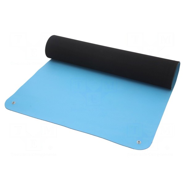Konstrukcja maty opiera się na dwóch warstwach specjalnej gumy: rozpraszającej oraz przewodzącej. Produkt wyposażony jest w cztery zatrzaski męskie o średnicy 10 mm, które umożliwiają połączenie z systemem uziemiającym. W zestawie: mata antystatyczna.
