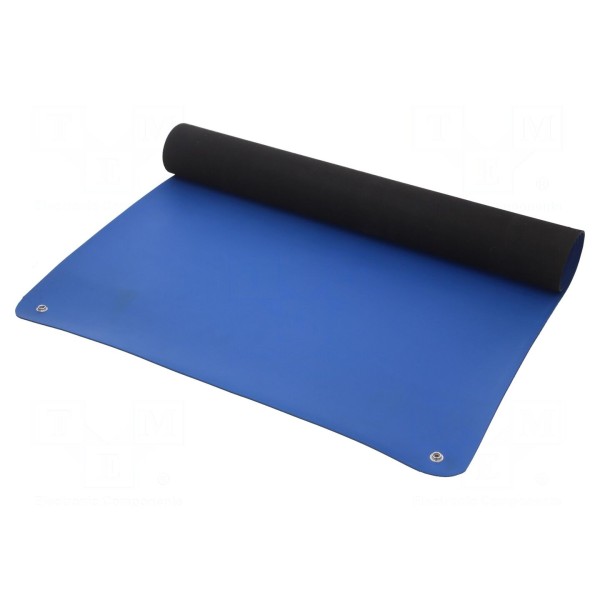 Mata stołowa ESD o wymiarach 1,2m długości oraz 0,6m szerokości przeznaczona jest do zabezpieczenia miejsc pracy przed wyładowaniami elektrostatycznymi. Produkt posiada grubość 2mm i charakteryzuje się ciemnoniebieskim kolorem.