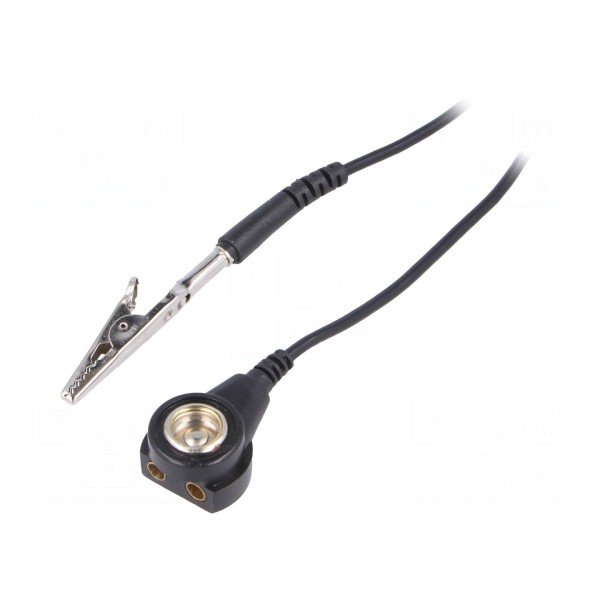 Przewód łączeniowy w wersji ESD przeznaczony jest do zapewnienia ciągłości uziemienia w strefach chronionych przed wyładowaniami elektrostatycznymi. Element posiada wbudowany rezystor o wartości 1MΩ, a jego całkowita długość wynosi 2,5m. Przewód wykonany jest w kolorze czarnym.
