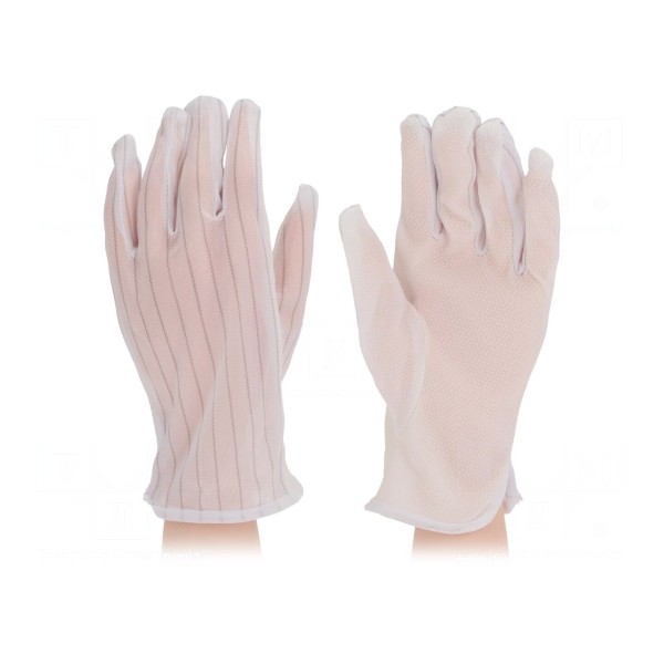 Rękawice ochronne ESD rozmiar M, poliester z włóknami przewodzącymi