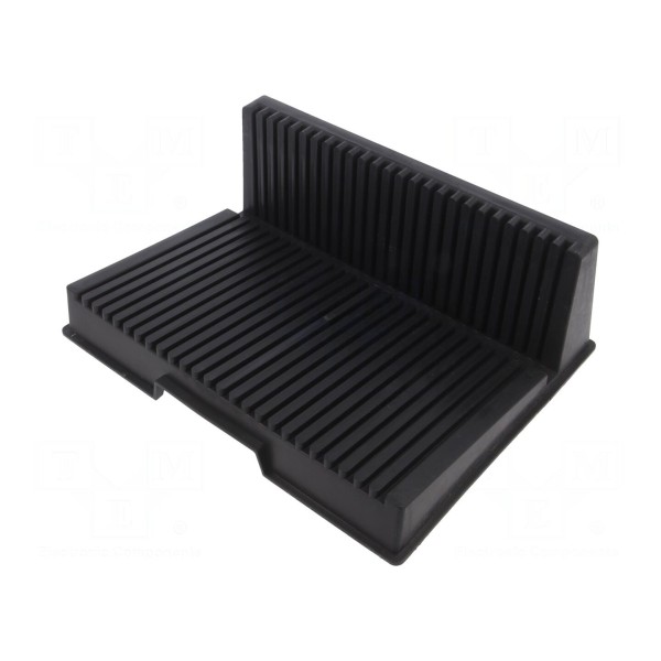 Stojak na płytki drukowane w wersji ESD służy do bezpiecznego przechowywania i transportu komponentów elektronicznych wrażliwych na wyładowania elektrostatyczne. Produkt został wykonany z tworzywa elektroprzewodzącego w kolorze czarnym.