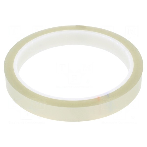 Parametry fizyczne taśmy obejmują szerokość 12mm, długość 33m oraz grubość warstwy wynoszącą 50µm. Materiał jest bezbarwny i zachowuje swoje właściwości użytkowe w zakresie temperatur od 0 do 65°C.