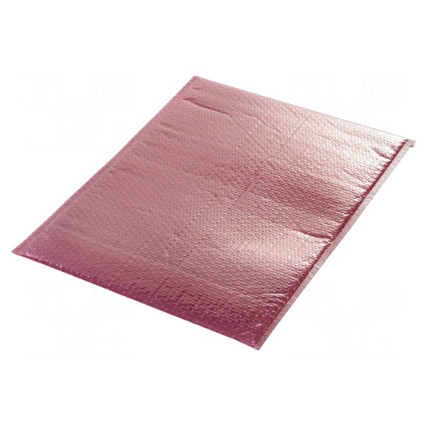 Torebka ochronna ESD typu ekranującego została wykonana z metalizowanej folii pęcherzykowej. Charakteryzuje się wymiarami 508 mm długości oraz 406 mm szerokości przy grubości materiału wynoszącej 76 µm. Produkt posiada rezystancję powierzchniową mniejszą niż 100 GΩ.