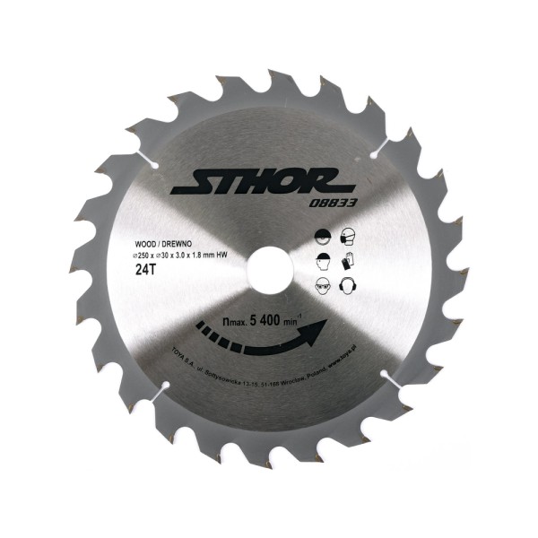 Piła tarczowa z węglikiem 250x30 mm, 24 zęby