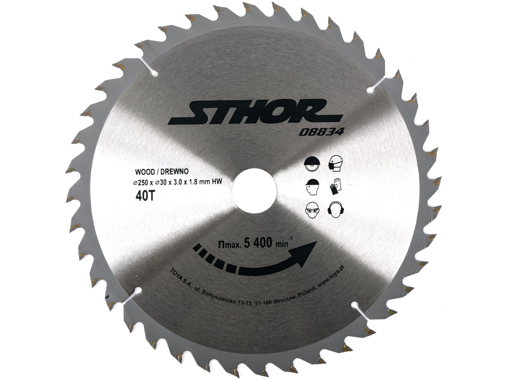 Tarcza służy do cięcia drewna, materiałów drewnopochodnych oraz wybranych tworzyw sztucznych.