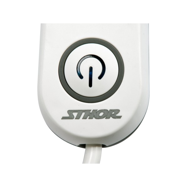 Przedłużacz listwowy marki Sthor z gniazdami z uziemieniem, zabezpieczeniem przed dziećmi oraz wyłącznikiem odcinającym zasilanie we wszystkich gniazdach.