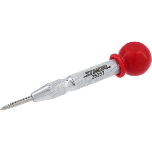 Narzędzie przeznaczone do wyznaczania punktów w drewnie, metalu i PVC przed wierceniem. Mechanizm sprężynowy wykonuje oznaczenia bez użycia młotka, co ogranicza przesuwanie się wiertła.