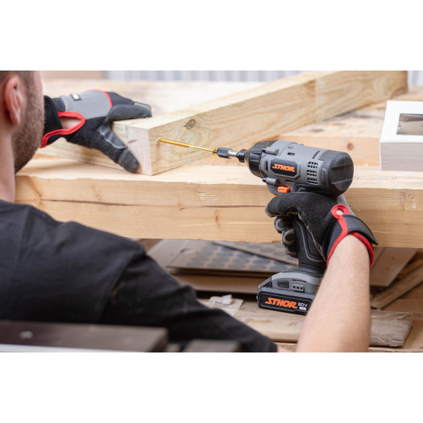 Napięcie zasilania 20 V, praca bez konieczności dociskania narzędzia dzięki udarowi.