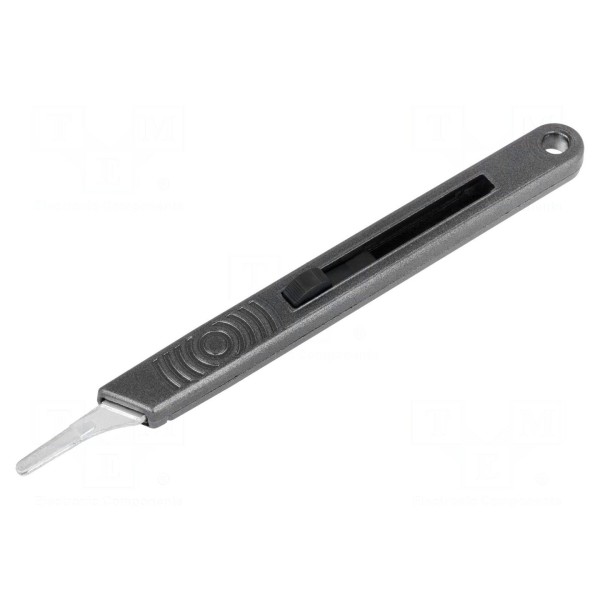 Uchwyt do skalpela 2339 SM wykonany został ze stali. Konstrukcja narzędzia uwzględnia funkcję chowanego ostrza, co podnosi poziom bezpieczeństwa podczas pracy i przechowywania.