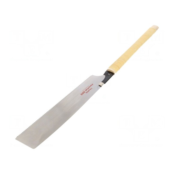 Konstrukcja piły uwzględnia uchwyt wykonany z ratanu, co zapewnia pewny chwyt podczas ręcznego prowadzenia cięcia. Parametry techniczne narzędzia umożliwiają pracę w materiałach drewnianych i płytach wiórowych, przy zachowaniu precyzji charakterystycznej dla japońskich narzędzi tnących.