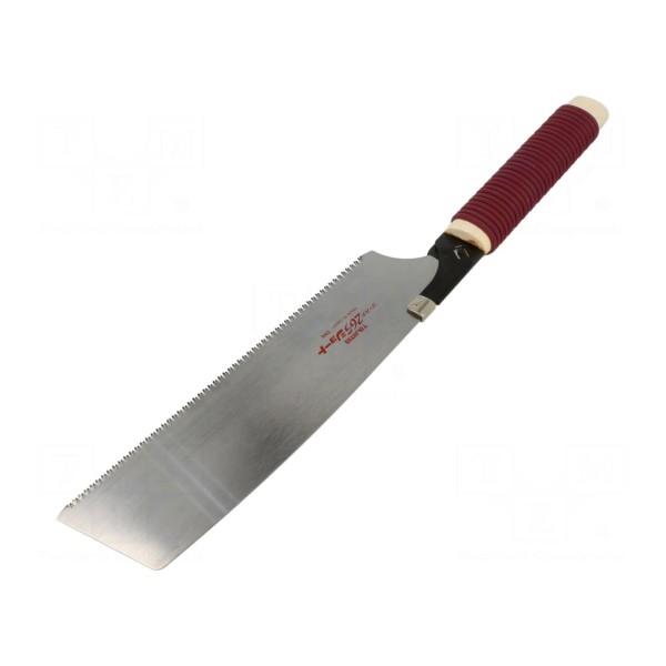 Piła ręczna typu japońskiego przeznaczona jest do prac związanych z obróbką drewna oraz płyt wiórowych. Narzędzie wyposażone jest w brzeszczot o długości roboczej wynoszącej 230 mm oraz gęstość uzębienia na poziomie 16 zębów na cal.