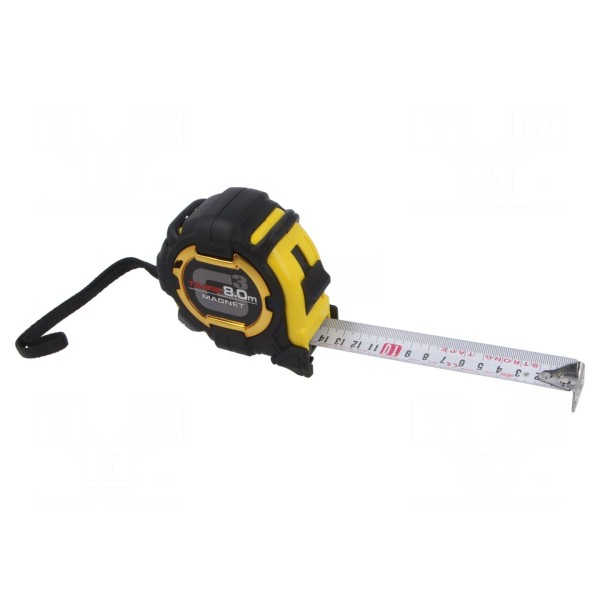 Taśma pomiarowa o długości 8 m i szerokości 27 mm służy do precyzyjnych prac pomiarowych. Narzędzie zostało wykonane zgodnie z II klasą dokładności, a obudowę urządzenia wykonano z tworzywa ABS.