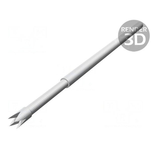 Igła testowa o średnicy końcówki 1,27 mm przeznaczona jest do precyzyjnych pomiarów w układach o rastrze minimalnym wynoszącym 2,54 mm. Element wyposażony jest w końcówkę o kształcie 4-punktowej korony z główką typu V, która posiada głębokie wcięcia ułatwiające kontakt z punktami testowymi. Konstrukcja zapewnia przepływ prądu znamionowego o wartości 3 A przy maksymalnej rezystancji styku wynoszącej 10 mΩ.