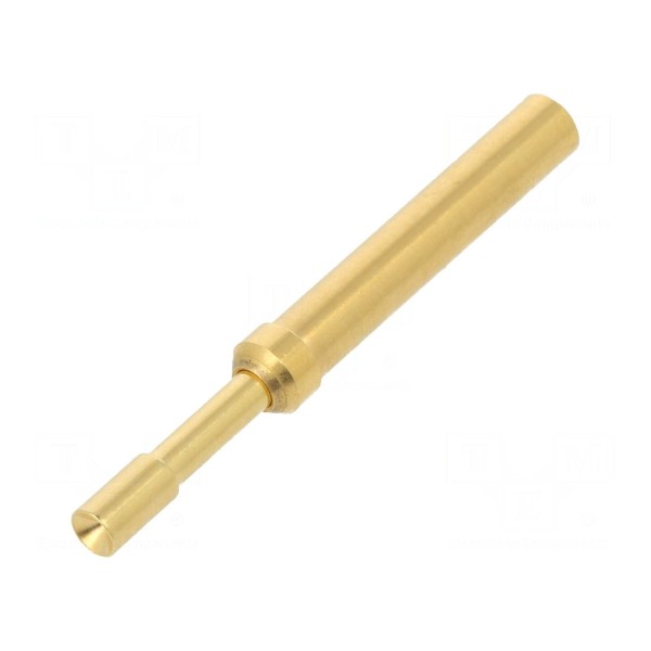 Końcówka o średnicy 2,3mm posiada wyprofilowany kształt, który obejmuje główkę typu 09, konstrukcję odwróconą oraz stożek. Element wykonany został z mosiądzu, a jego powierzchnia styku jest złocona. Całość przystosowana jest do montażu w układach o rastrze minimalnym 4,5mm.