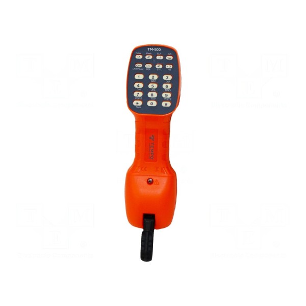 Telefon monterski Tempo 00851 to przyrząd wyposażony w złącze RJ11, przeznaczony do prac serwisowych w telekomunikacji. Urządzenie obsługuje wybieranie numerów w trybie tonowym lub impulsowym, oferując przy tym pamięć 10 numerów oraz funkcję powtarzania ostatniego wybranego połączenia. Obsługiwana długość zapisanego numeru wynosi 32 cyfry, a limit pętli określono na poziomie 4,8 kΩ.