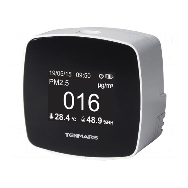 Miernik jakości powietrza TENMARS TM-280 umożliwia precyzyjne monitorowanie stężenia cząstek PM2,5 w zakresie od 0 do 500µg/m³. Przyrząd integruje również funkcje pomiaru temperatury otoczenia w zakresie od –20 do 50°C oraz wilgotności powietrza w przedziale od 1 do 99% RH.