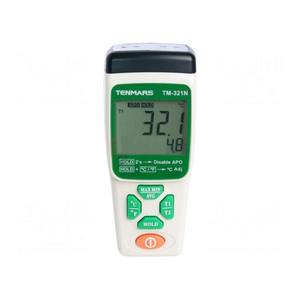 Cyfrowy miernik temperatury TM-321N umożliwia precyzyjny pomiar w zakresie od -200°C do 1372°C z rozdzielczością 0,1°C. Urządzenie wyposażone jest w dwa kanały pomiarowe, co pozwala na jednoczesną analizę danych oraz wykorzystanie funkcji różnicowej T1-T2. Próbkowanie odbywa się z częstotliwością 1 raz na sekundę, a odczyt prezentowany jest na czytelnym wyświetlaczu LCD o pojemności 9999 zliczeń.