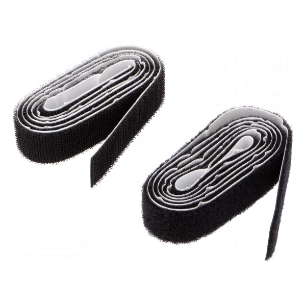 Konstrukcja taśmy umożliwia wielokrotne rozłączanie i powtórne łączenie elementów. Materiał w kolorze czarnym jest przeznaczony do wiązkowania kabli i przewodów.
