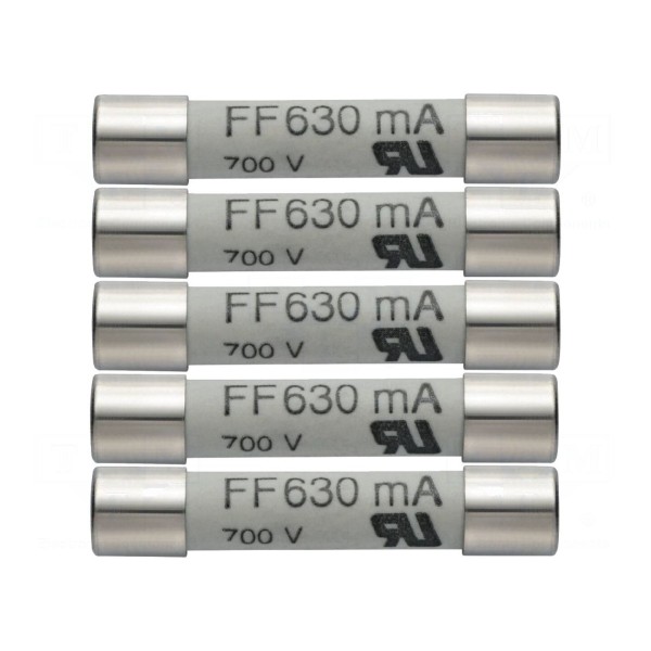 Bezpiecznik 630mA, 600V, wymiary 6x32mm, zestaw 5szt.