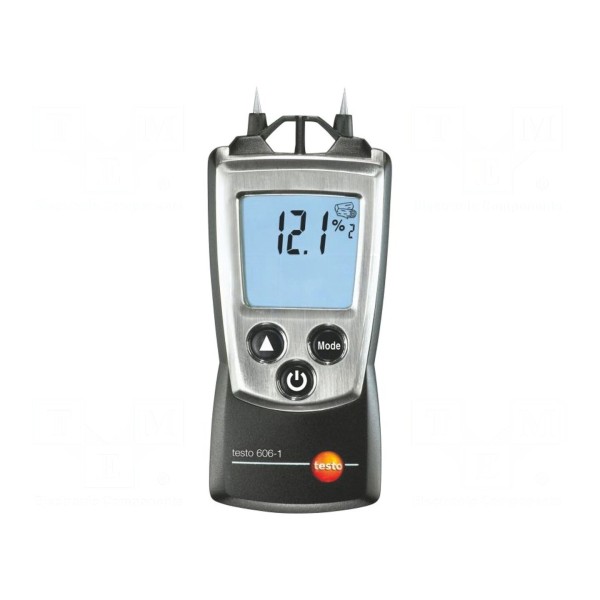 Higrometr TESTO 606-1 jest przeznaczony do precyzyjnego pomiaru wilgotności materiałów budowlanych oraz różnych gatunków drewna. Przyrząd oferuje szeroki zakres pomiarowy, obejmujący materiały takie jak cegła, zaprawa wapienna, beton, jastrych oraz szeroką gamę gatunków drzew, w tym dąb, sosna, świerk czy buk. Dokładność pomiaru wilgotności wynosi poniżej 1%.