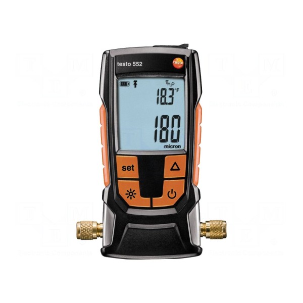 Wakuometr Testo 552 jest urządzeniem przeznaczonym do monitorowania układów chłodniczych, pomp ciepła oraz instalacji klimatyzacyjnych. Przyrząd umożliwia pomiar ciśnienia, próżni oraz temperatury w zakresie od 0 do 26,66 bar. Częstotliwość próbkowania wynosi 2x na sekundę, co zapewnia stałą kontrolę nad parametrami układu.