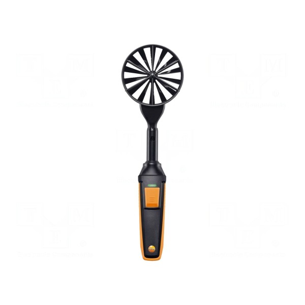 Dokładność pomiaru prędkości wynosi ±(0,1 m/s + 1,5%) dla zakresu 0,3–20 m/s oraz ±(0,2 m/s + 1,5%) dla zakresu 20,01–35 m/s. Sonda o średnicy 100 mm jest wyposażona w moduł Bluetooth, który zapewnia komunikację z urządzeniami pomiarowymi na odległość do 20 m. Całość konstrukcji utrzymana jest w czarno-pomarańczowej kolorystyce.