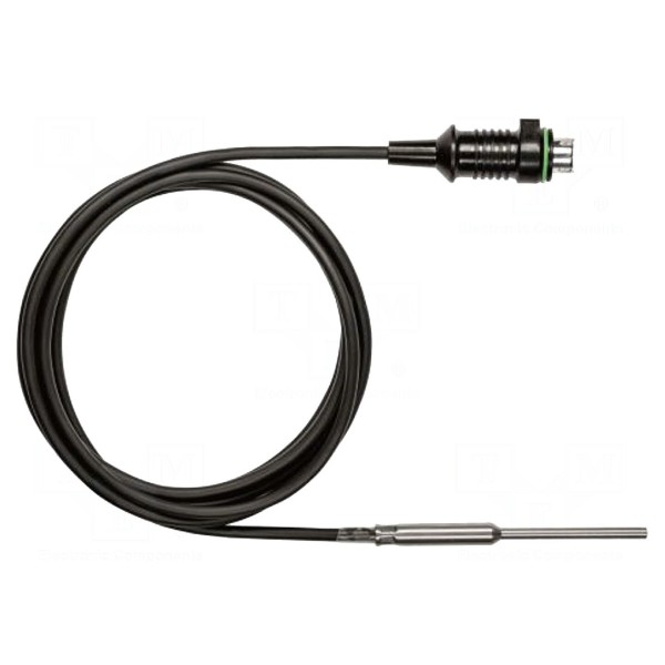 Element pomiarowy charakteryzuje się dokładnością ±0,2°C w zakresie od –25°C do 74,9°C oraz ±0,4°C dla pozostałych zakresów pracy. Sonda posiada średnicę 3 mm oraz długość 40 mm, a całość połączona jest z układem pomiarowym za pomocą przewodu o długości 1,5 m.