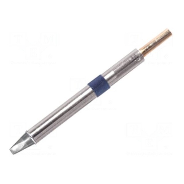 Grot lutowniczy typu wkrętak o szerokości 2,5 mm charakteryzuje się wbudowaną grzałką. Element przeznaczony jest do wykorzystania w stacjach lutowniczych oraz lutownicach współpracujących z systemem Thermaltronics.