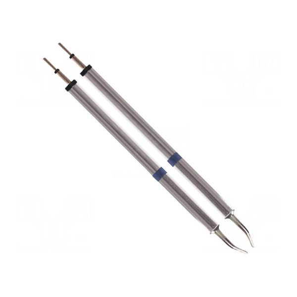Grot lutowniczy typu z grzałką przeznaczony jest do pracy z gorącymi szczypcami. Element posiada końcówkę o kształcie wydłużonego, zagiętego wkrętaka o wymiarze 1,78 mm.
