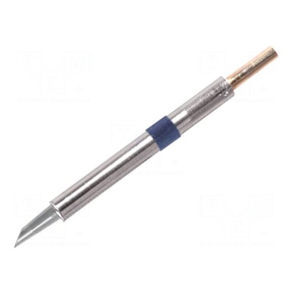 Grot lutowniczy z wbudowaną grzałką typu minifala o średnicy 3,1 mm przeznaczony jest do wykorzystania w stacjach i kolbach lutowniczych. Element charakteryzuje się końcówką ściętą pod kątem 60°, co ułatwia prowadzenie spoiwa podczas procesu lutowania.