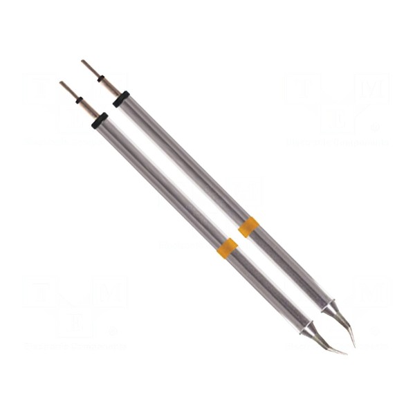 Grot z wbudowaną grzałką o kształcie zagiętego stożka przeznaczony jest do pracy z gorącymi szczypcami. Średnica końcówki wynosi 0,25 mm, co pozwala na precyzyjne operacje lutownicze.