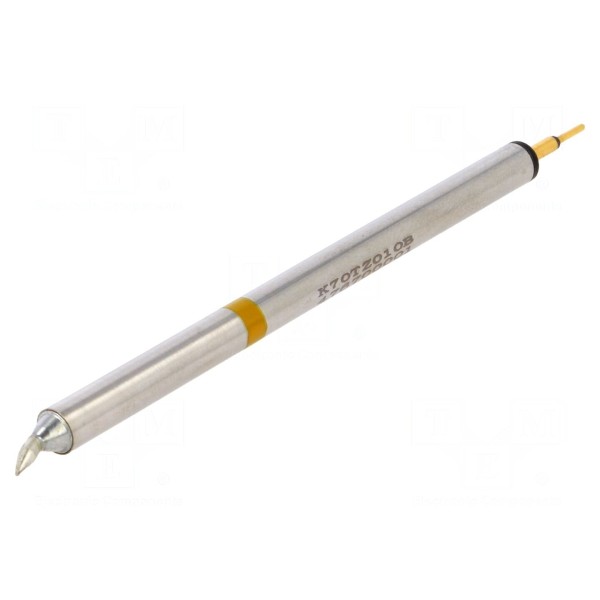 Grot typu zagięty wkrętak o średnicy 1 mm został wyposażony we wbudowaną grzałkę. Element jest przeznaczony do pracy z gorącymi szczypcami.