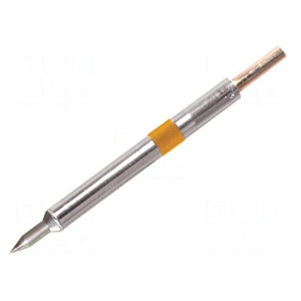 Grot lutowniczy z wbudowaną grzałką posiada końcówkę o kształcie stożka i średnicy 0,2 mm. Element ten charakteryzuje się zakresem pracy w temperaturze od 350°C do 398°C.