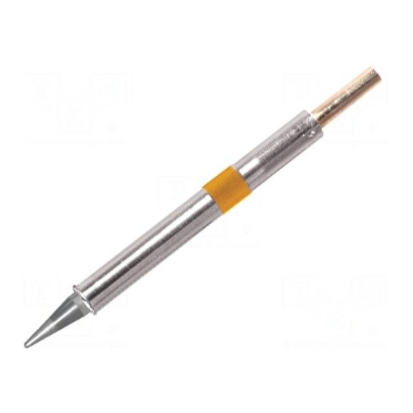 Grot lutowniczy typu stożkowego z wbudowaną grzałką posiada końcówkę o średnicy 1 mm. Element pracuje w zakresie temperatur od 350°C do 398°C, co pozwala na stabilne utrzymanie parametrów podczas procesów łączenia komponentów.