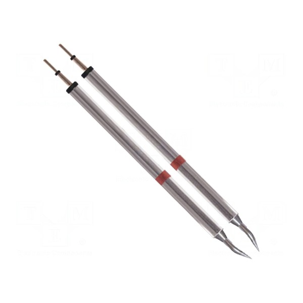 Grot typu z grzałką przeznaczony jest do pracy z gorącymi szczypcami. Kształt końcówki to zagięty stożek o średnicy 0,4 mm, co umożliwia precyzyjne operacje lutownicze.