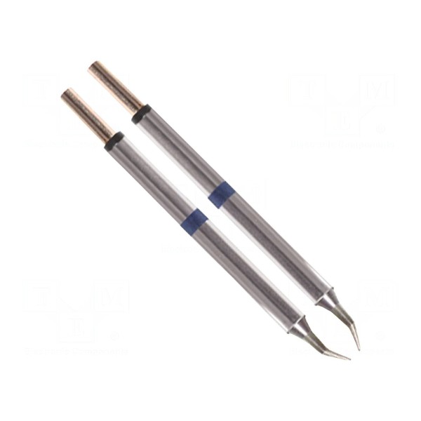 Grot z grzałką o kształcie zagiętego stożka przeznaczony jest do wykorzystania w gorących szczypcach. Element charakteryzuje się wymiarem końcówki wynoszącym 0,25 mm.