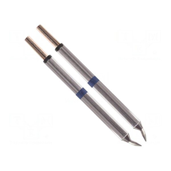 Grot z wbudowaną grzałką przeznaczony jest do wykorzystania z gorącymi szczypcami. Element charakteryzuje się kształtem zagiętego wkrętaka o wymiarze 1mm, co umożliwia precyzyjne operacje w ograniczonej przestrzeni roboczej.