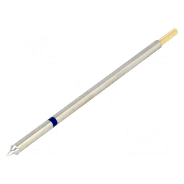 Grot z wbudowaną grzałką przeznaczony jest do wykorzystania w stacjach lutowniczych. Element charakteryzuje się kształtem ściętego stożka o średnicy 1,8 mm oraz kątem ścięcia wynoszącym 60 stopni.
